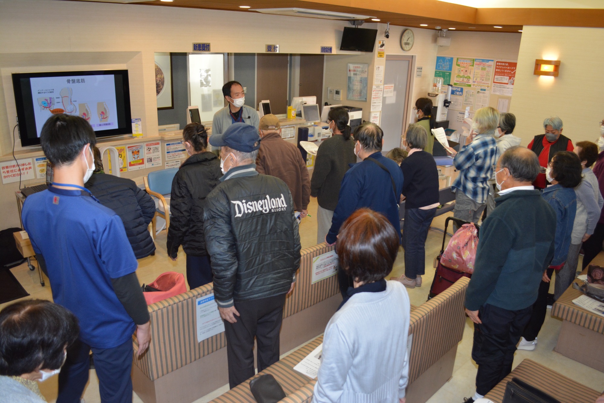 講師は当院理学療法士のつぼい。講演のタイトルは「変形性膝関節症について」。内容は姿勢調節に必要な筋のトレーニング・膝周りの筋のトレーニング・ストレッチ歩行に関してのポイント等を中心に行いました。